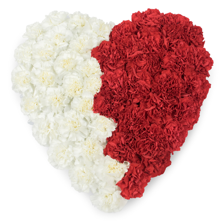 Our elegant heart-shaped bouquet features a stunning combination of white and red carnations, perfect for expressing deep emotions. Each carnation is hand-selected to ensure exceptional freshness and beauty.